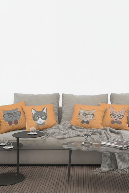 4 Housses de coussin à motif de chat, 40×40 cm